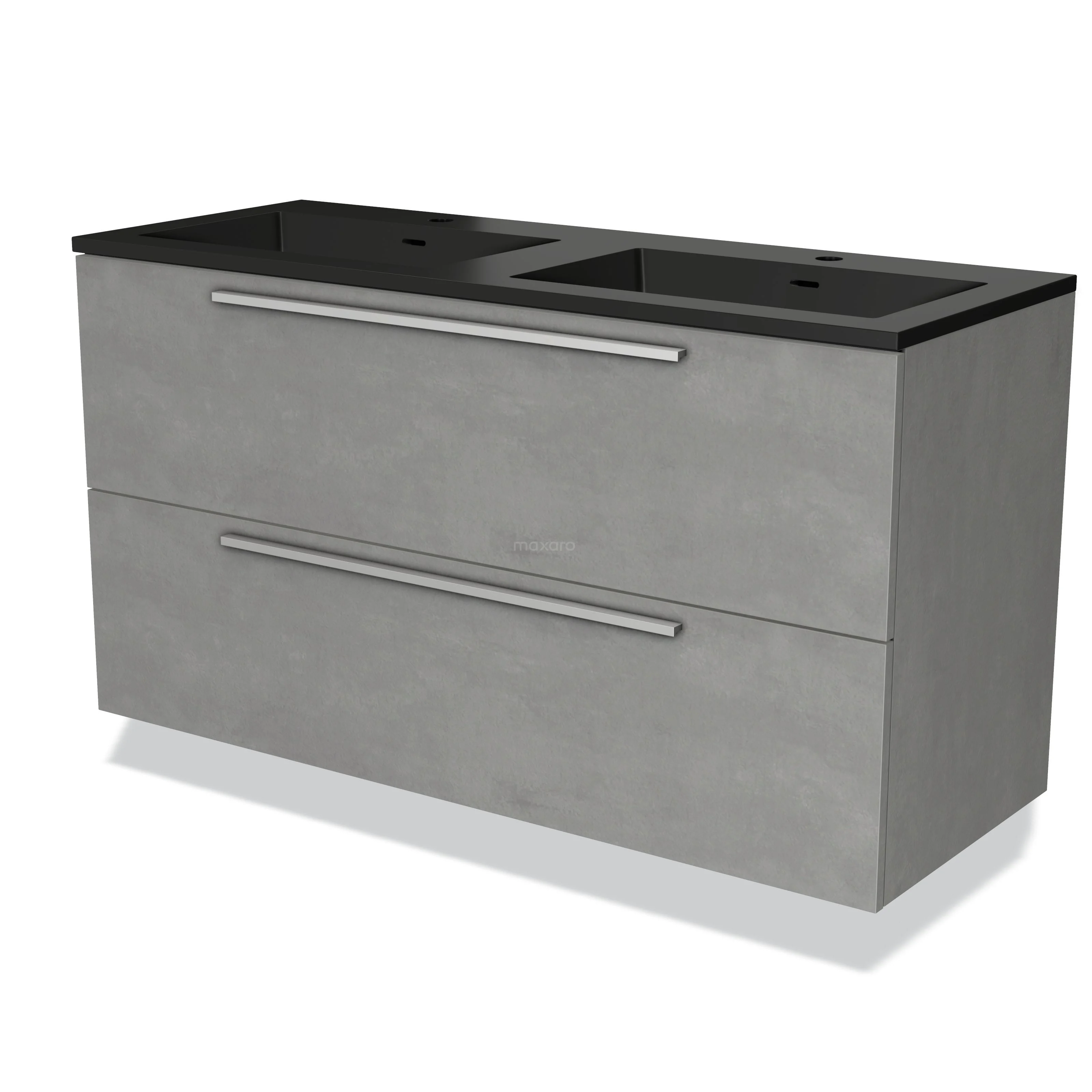 Modulo Waschtische | 120 cm Hellgrauer Beton Flach front Quarz 2 übereinanderliegende Schubladen