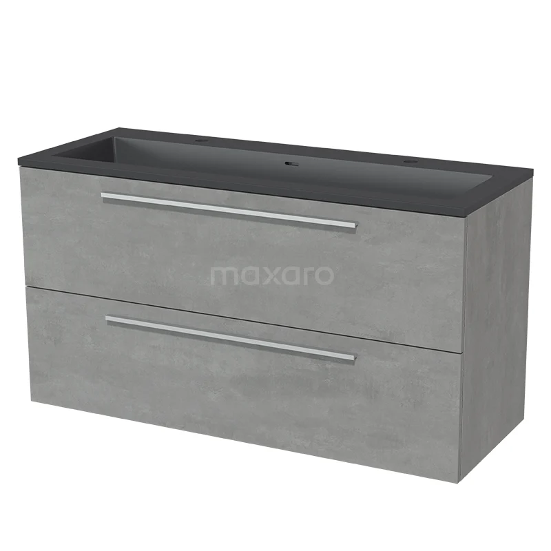 Modulo Waschtische | 120 cm Hellgrauer Beton Flach front Quarz 2 übereinanderliegende Schubladen