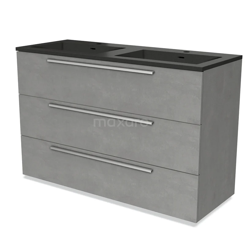 Modulo Waschtische | 120 cm Hellgrauer Beton Flach front Quarz 3 Schubladen