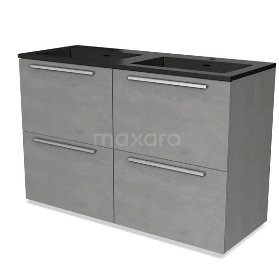 Modulo Waschtische | 120 cm Hellgrauer Beton Flach front Quarz 4 hohe Schubladen