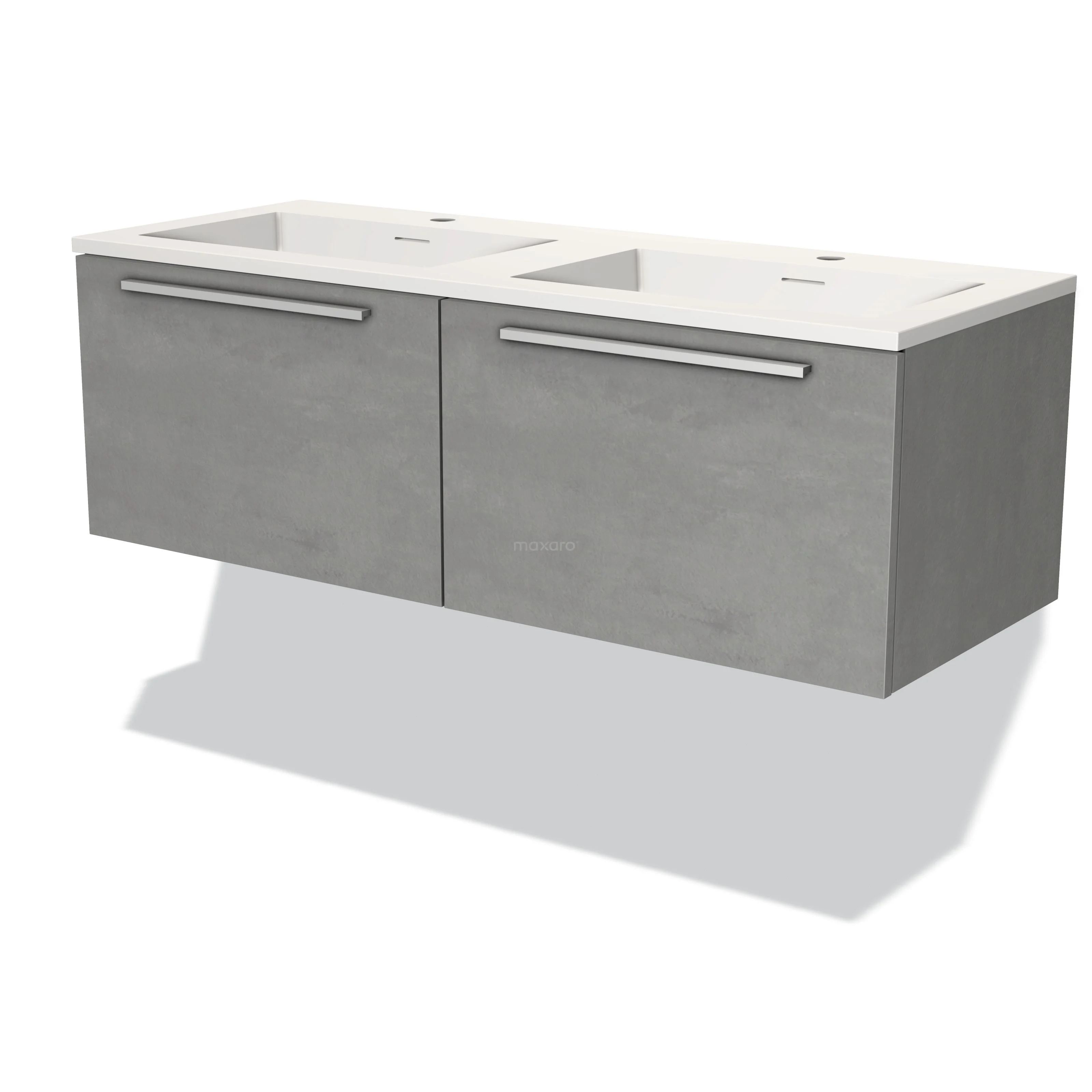 Modulo Waschtische | 120 cm Hellgrauer Beton Flach front Solid Surface 2 nebeneinanderliegende Schubladen