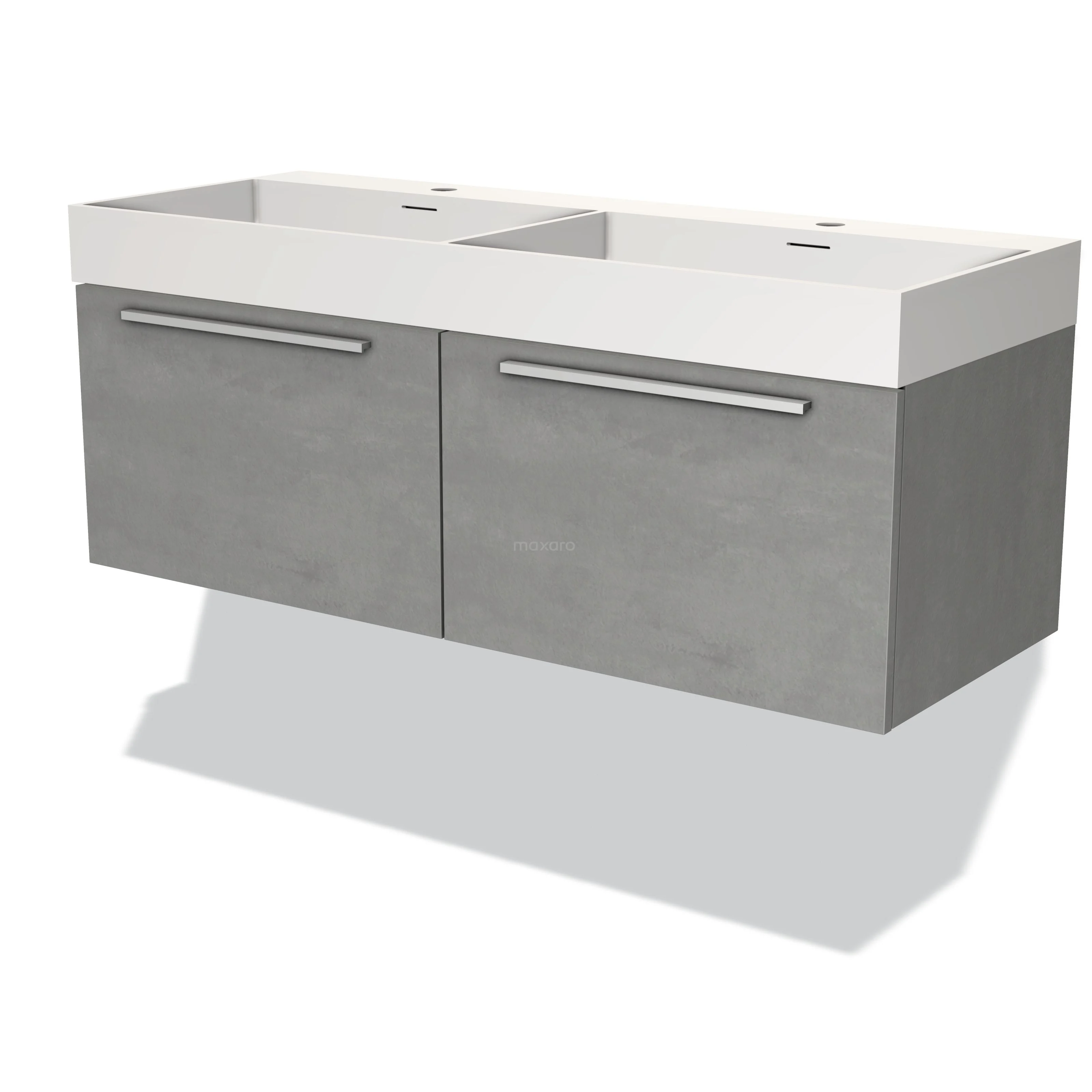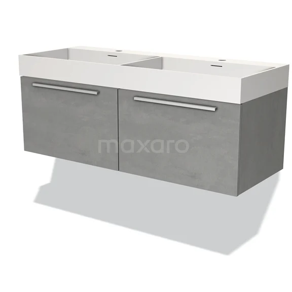 Modulo Waschtische | 120 cm Hellgrauer Beton Flach front Solid Surface 2 nebeneinanderliegende Schubladen