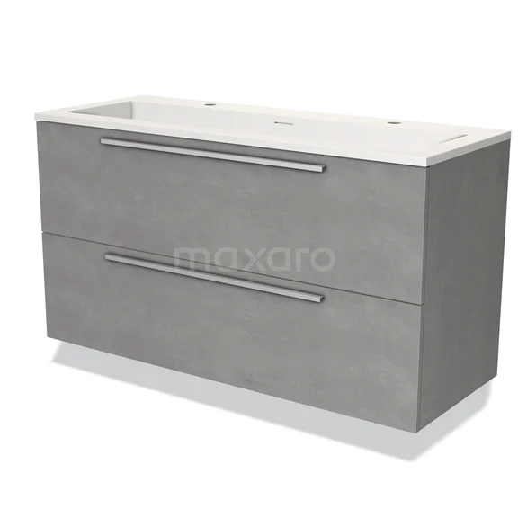Modulo Waschtische | 120 cm Hellgrauer Beton Flach front Solid Surface 2 übereinanderliegende Schubladen