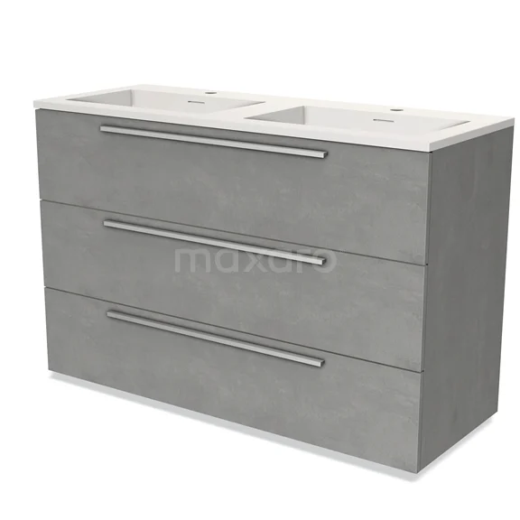 Modulo Waschtische | 120 cm Hellgrauer Beton Flach front Solid Surface 3 Schubladen