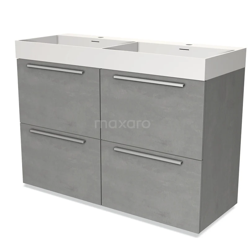 Modulo Waschtische | 120 cm Hellgrauer Beton Flach front Solid Surface 4 hohe Schubladen
