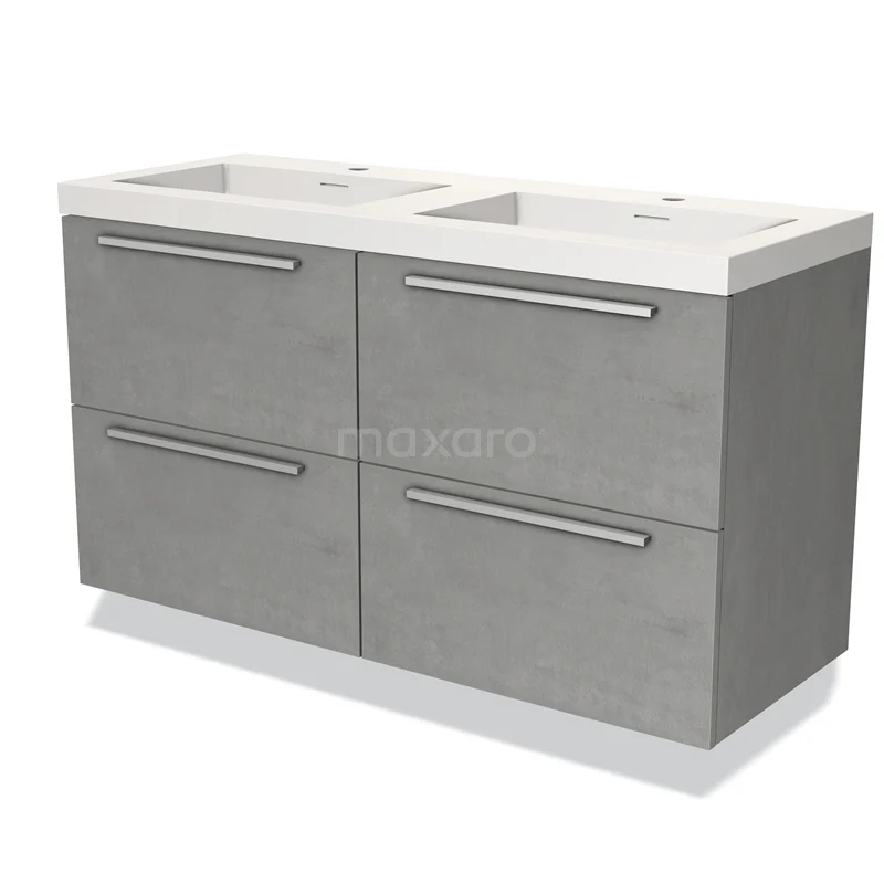 Modulo Waschtische | 120 cm Hellgrauer Beton Flach front Solid Surface 4 Schubladen