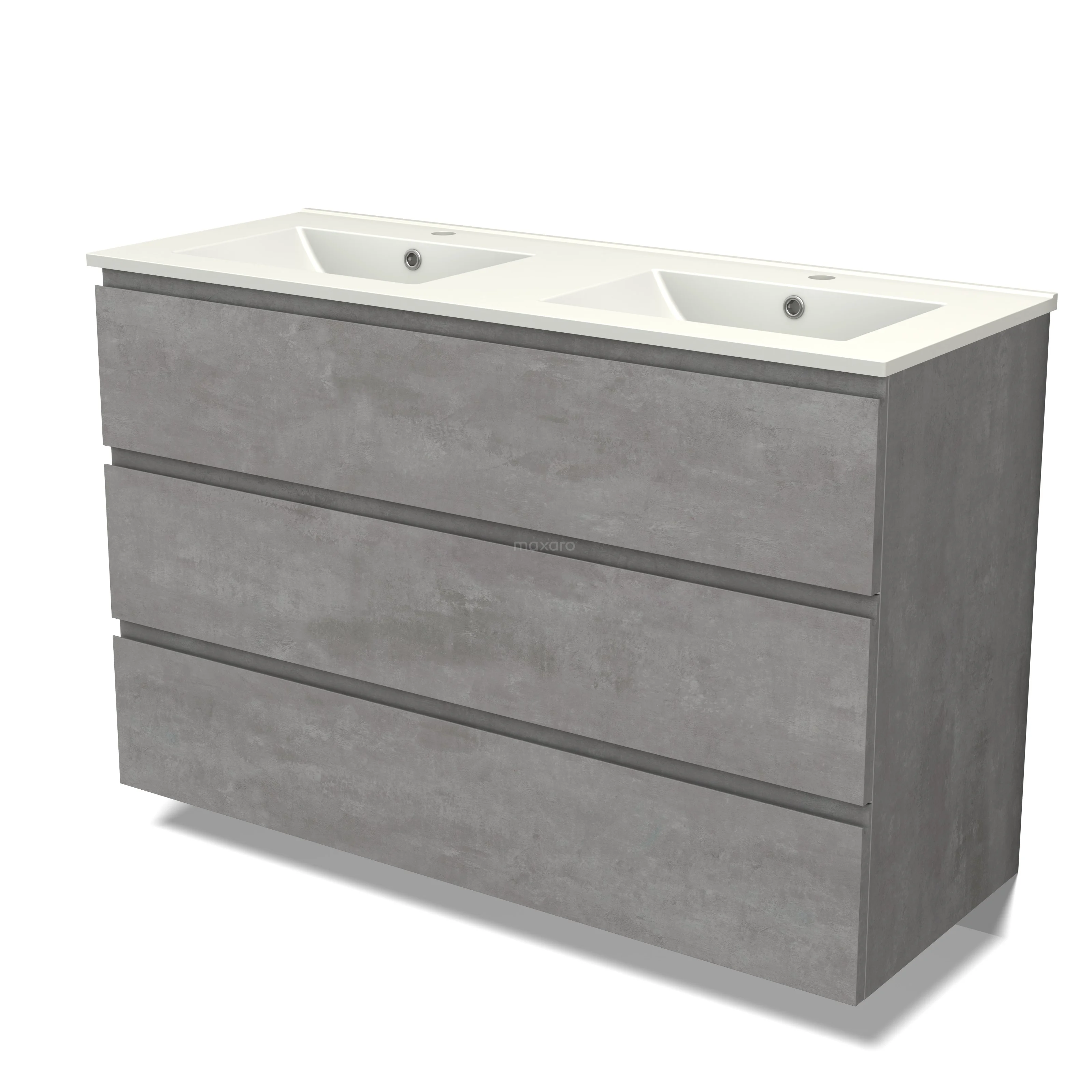 Das bodenstehende Badmöbel (121 cm) ist das Herzstück für die tägliche Körperpflege wie Schminken, Rasieren oder Zähneputzen. Das Waschbecken hat 2 Hahnlöcher und ist ideal für die gleichzeitige Nutzung durch mehrere Personen. Das Möbel bietet außerdem genügend Platz, um Ihre WC- und Pflegeprodukte ordentlich zu verstauen.