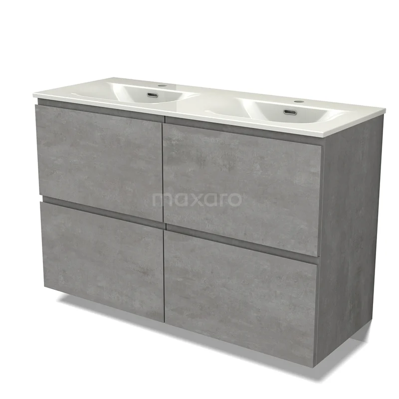 Modulo Waschtische | 120 cm Hellgrauer Beton Grifflos front Keramik 4 hohe Schubladen