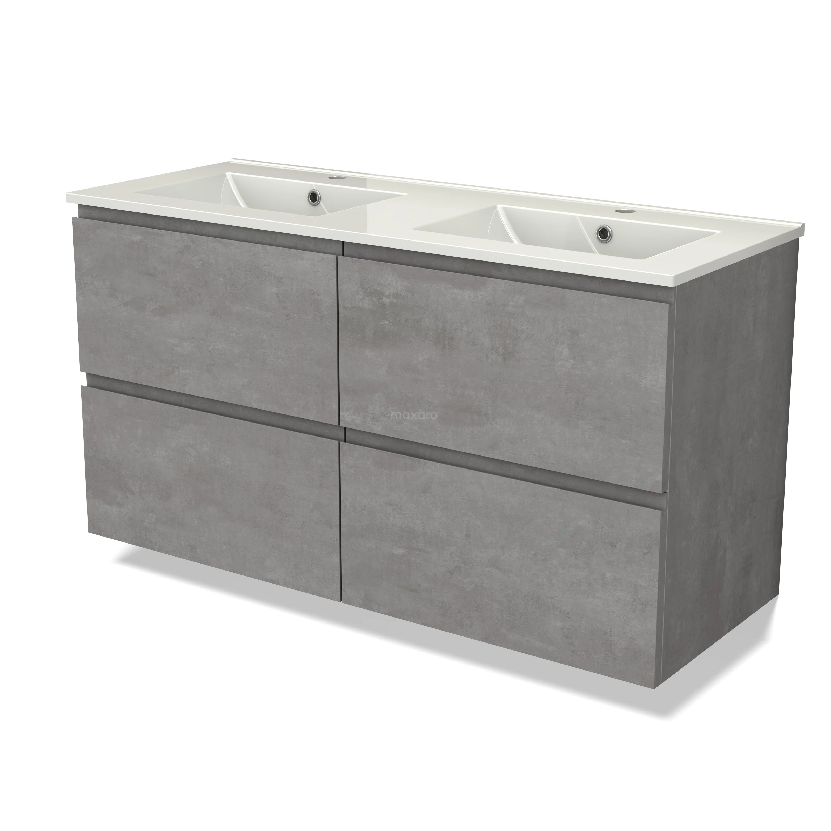 Modulo Waschtische | 120 cm Hellgrauer Beton Grifflos front Keramik 4 Schubladen