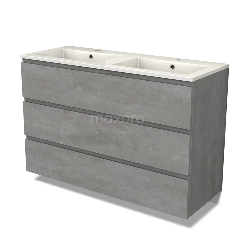 Modulo Waschtische | 120 cm Hellgrauer Beton Grifflos front Mineralguss 3 Schubladen