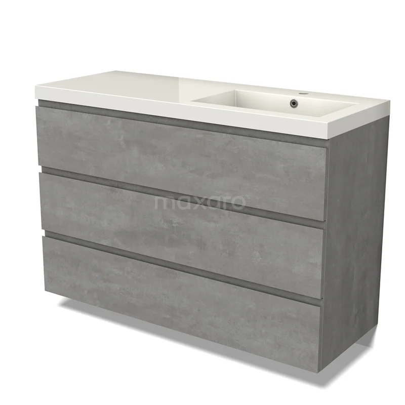 Modulo Waschtische | 120 cm Hellgrauer Beton Grifflos front Mineralguss 3 Schubladen