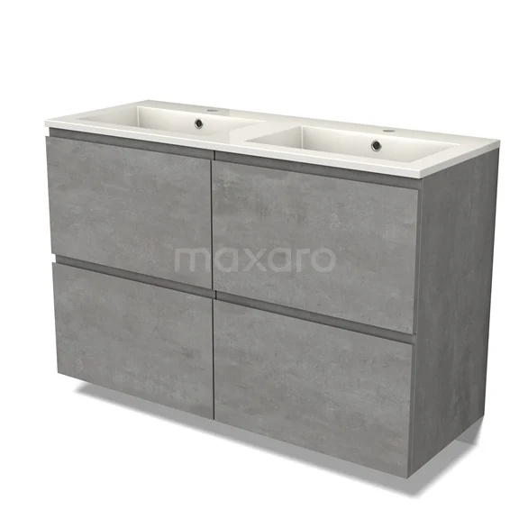 Modulo Waschtische | 120 cm Hellgrauer Beton Grifflos front Mineralguss 4 hohe Schubladen