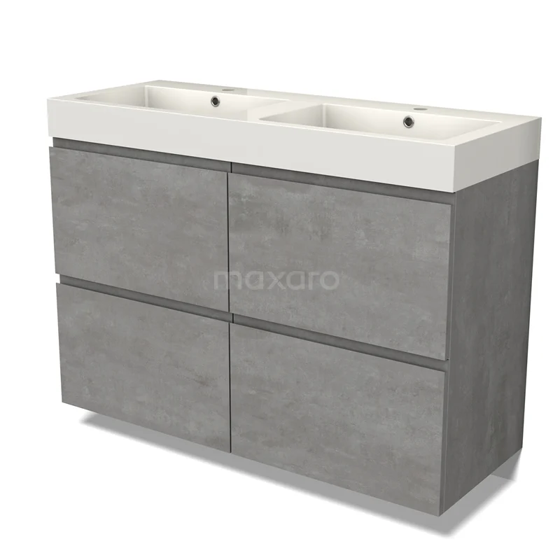 Modulo Waschtische | 120 cm Hellgrauer Beton Grifflos front Mineralguss 4 hohe Schubladen