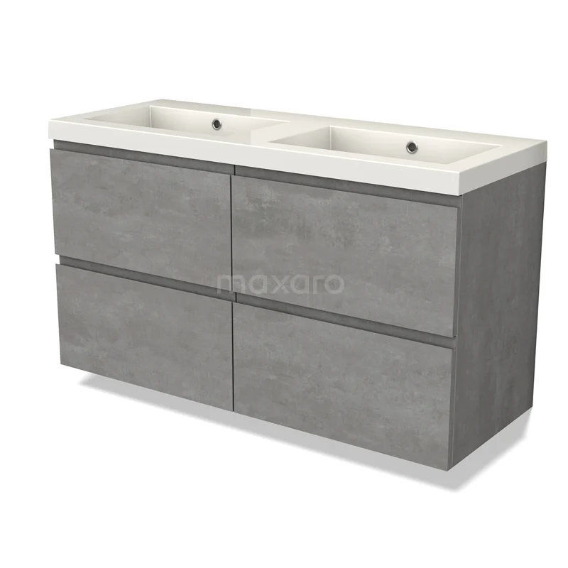 Modulo Waschtische | 120 cm Hellgrauer Beton Grifflos front Mineralguss 4 Schubladen