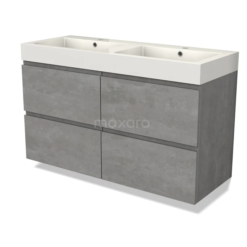 Modulo Waschtische | 120 cm Hellgrauer Beton Grifflos front Mineralguss 4 Schubladen