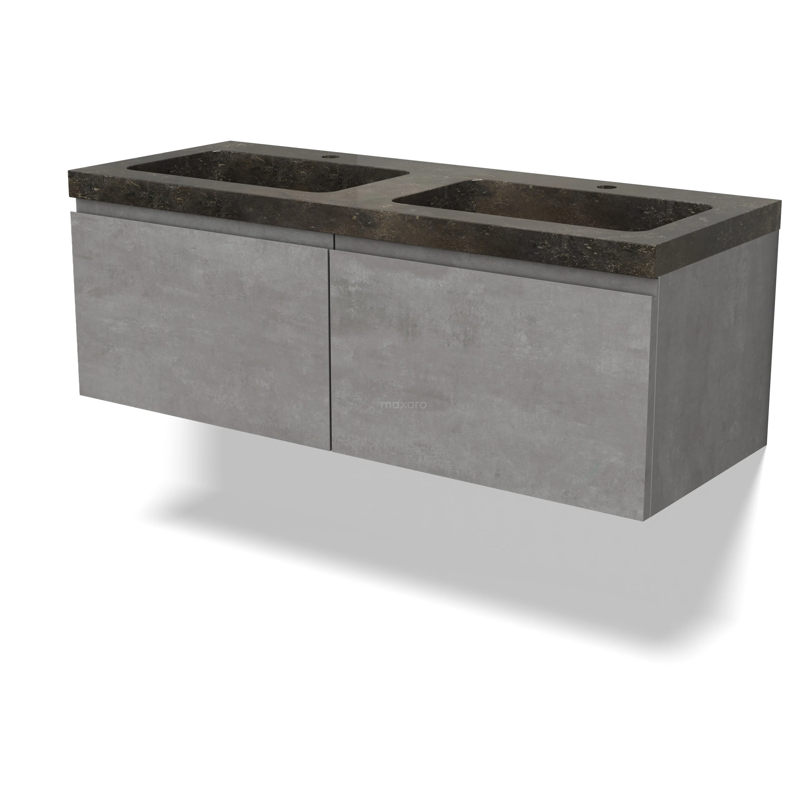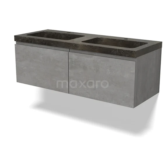 Modulo Waschtische | 120 cm Hellgrauer Beton Grifflos front Naturstein 2 nebeneinanderliegende Schubladen