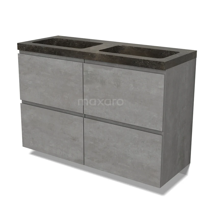 Modulo Waschtische | 120 cm Hellgrauer Beton Grifflos front Naturstein 4 hohe Schubladen
