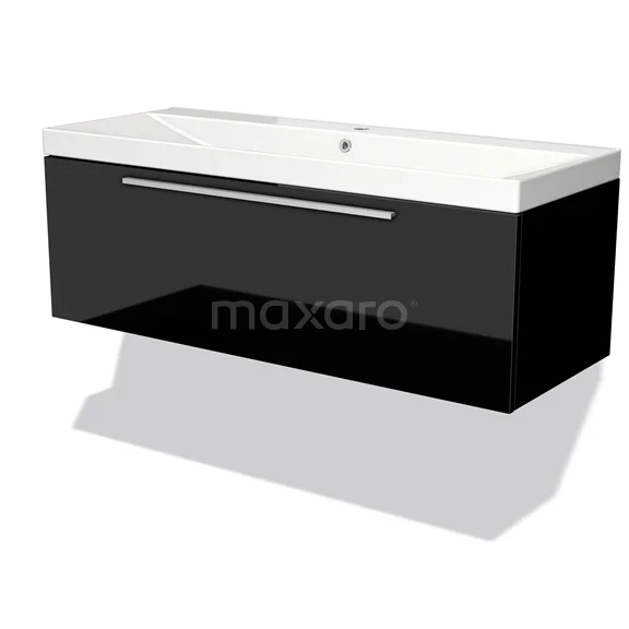 Modulo Waschtische | 120 cm Hochglanz Schwarz Flach front Keramik 1 Schublade