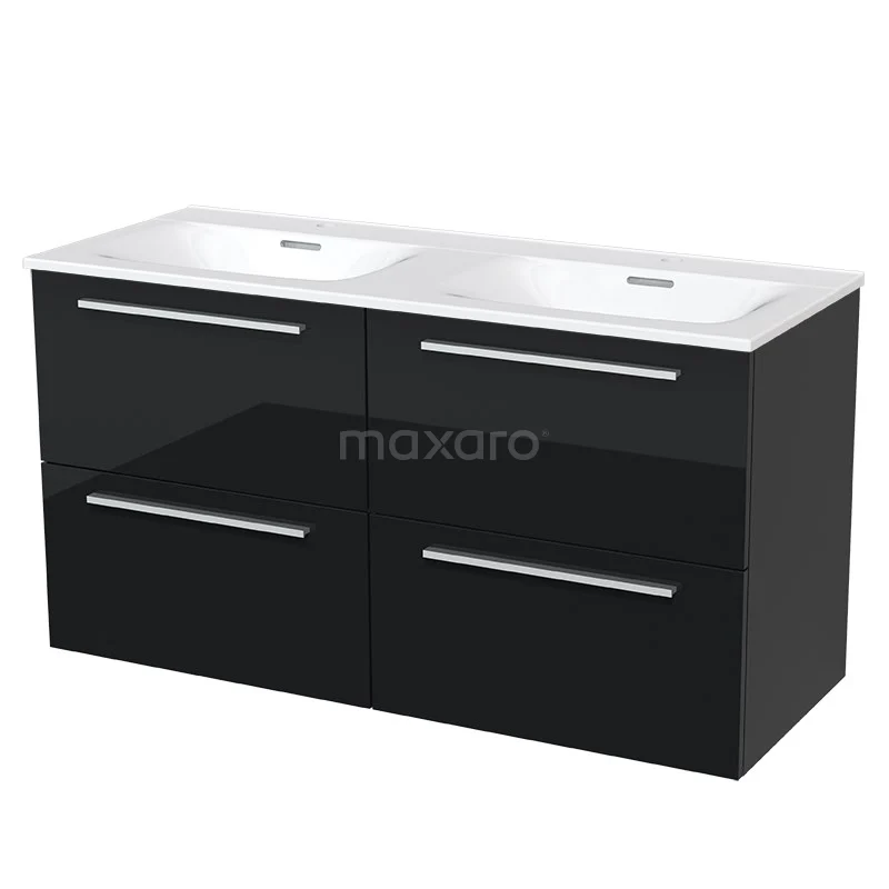 Modulo Waschtische | 120 cm Hochglanz Schwarz Flach front Keramik 4 Schubladen