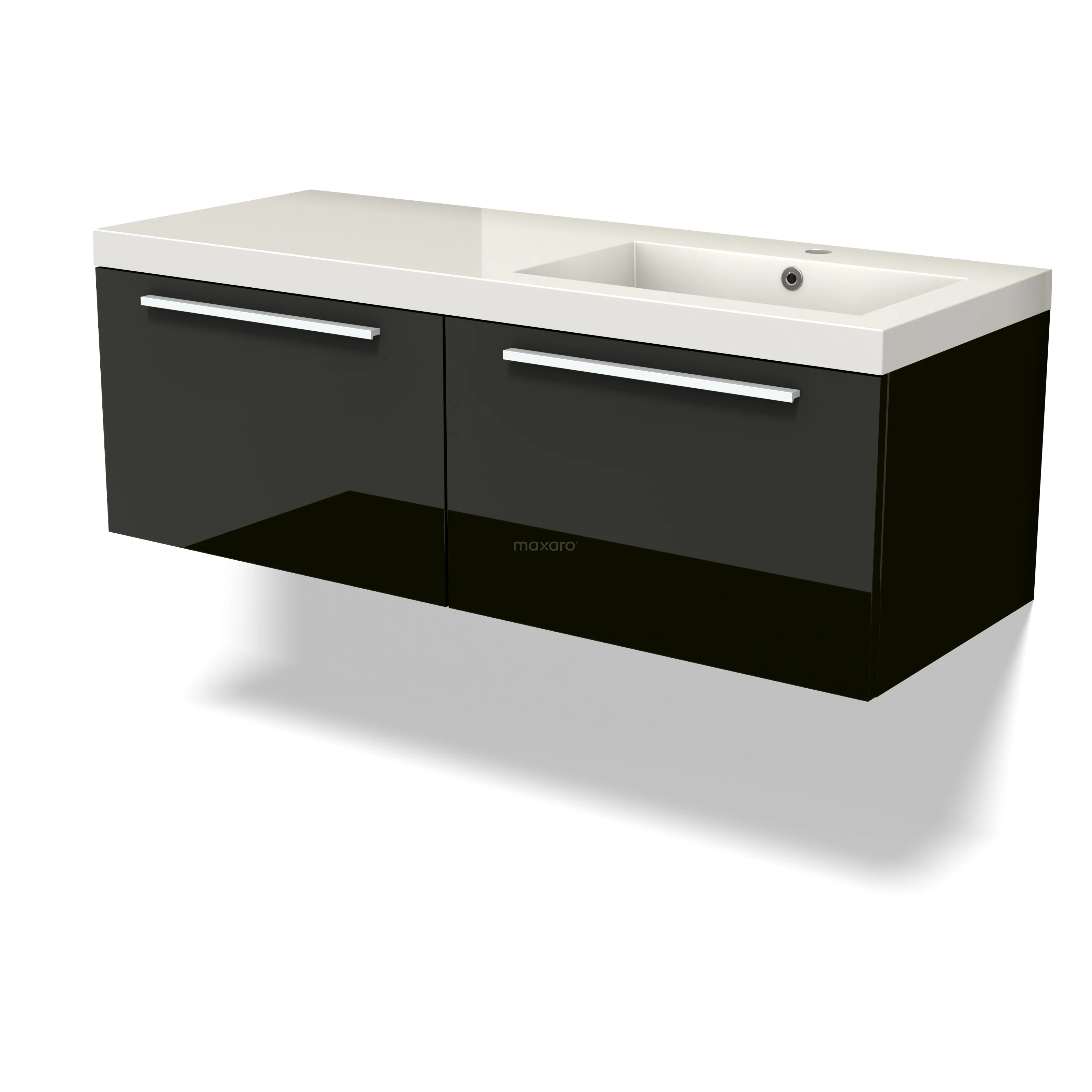 Modulo Waschtische | 120 cm Hochglanz Schwarz Flach front Mineralguss 2 nebeneinanderliegende Schubladen