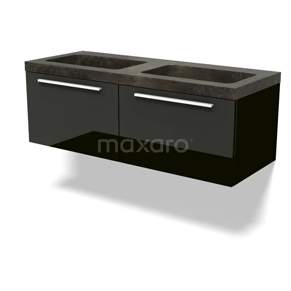 Modulo Waschtische | 120 cm Hochglanz Schwarz Flach front Naturstein 2 nebeneinanderliegende Schubladen
