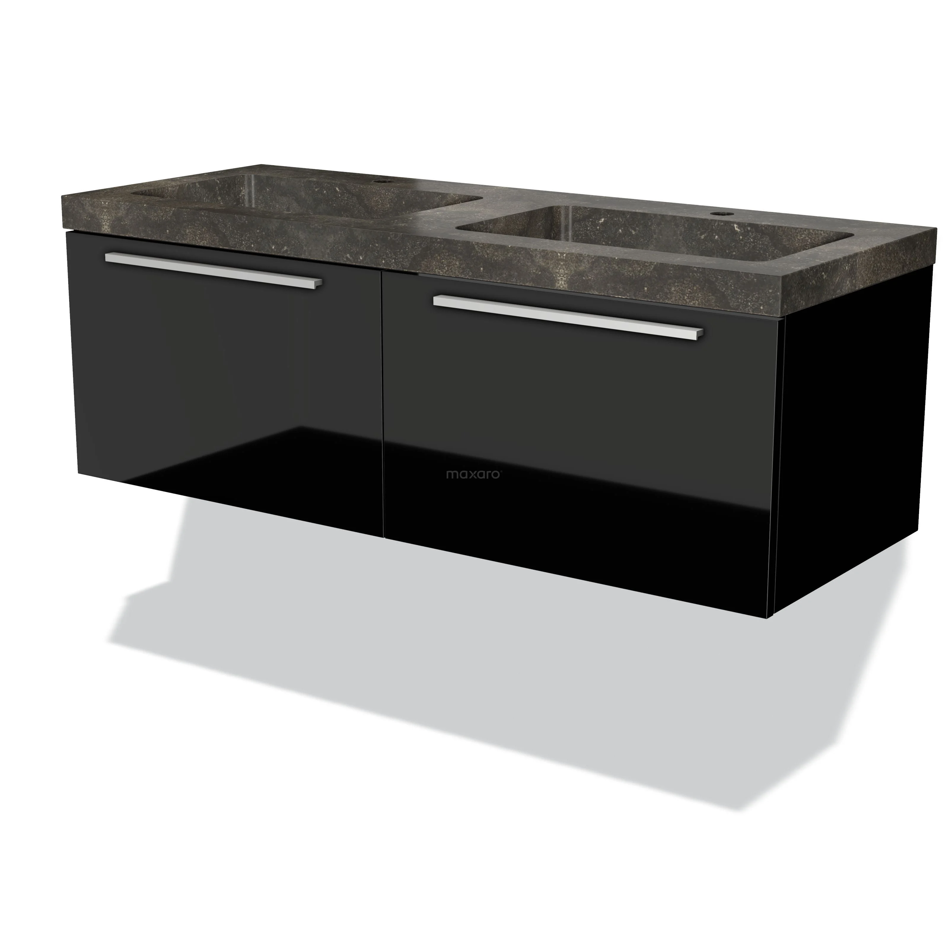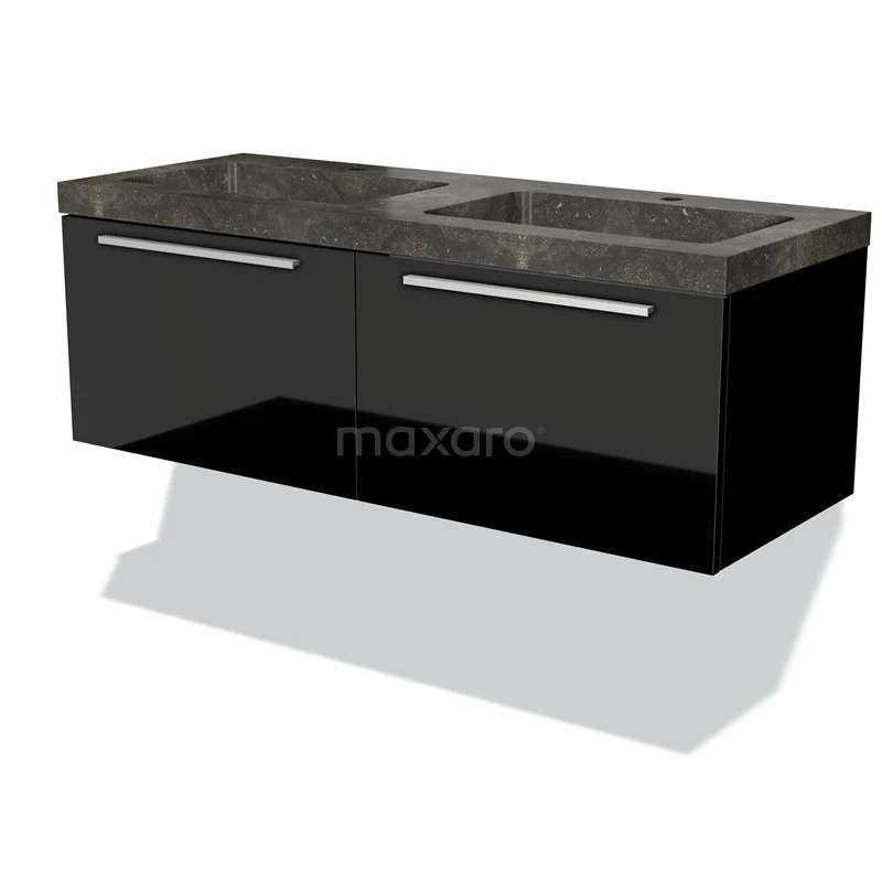 Modulo Waschtische | 120 cm Hochglanz Schwarz Flach front Naturstein 2 nebeneinanderliegende Schubladen