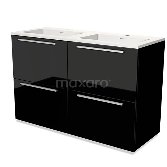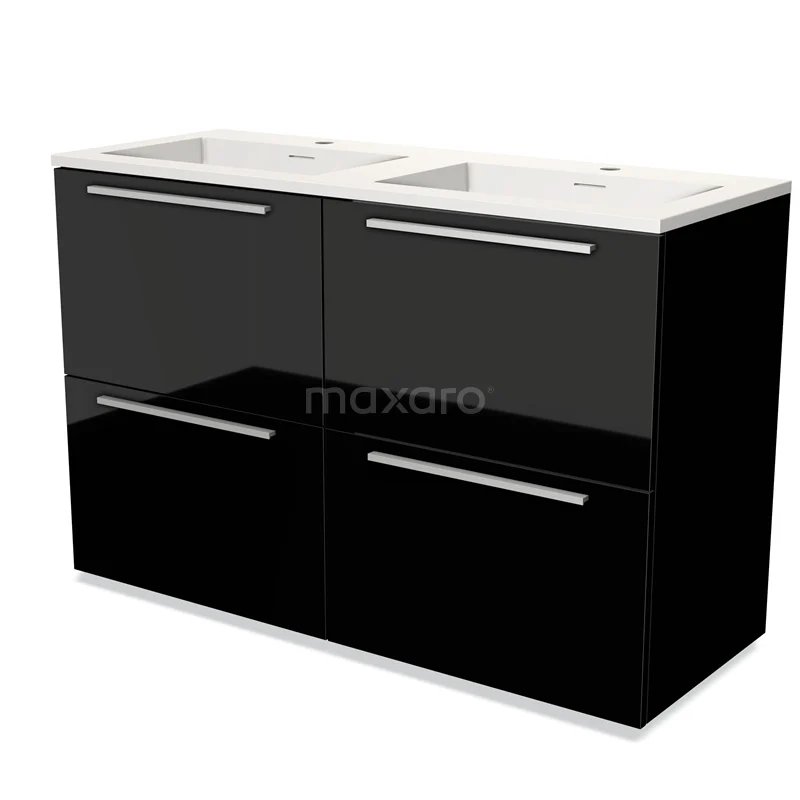 Modulo Waschtische | 120 cm Hochglanz Schwarz Flach front Solid Surface 4 hohe Schubladen