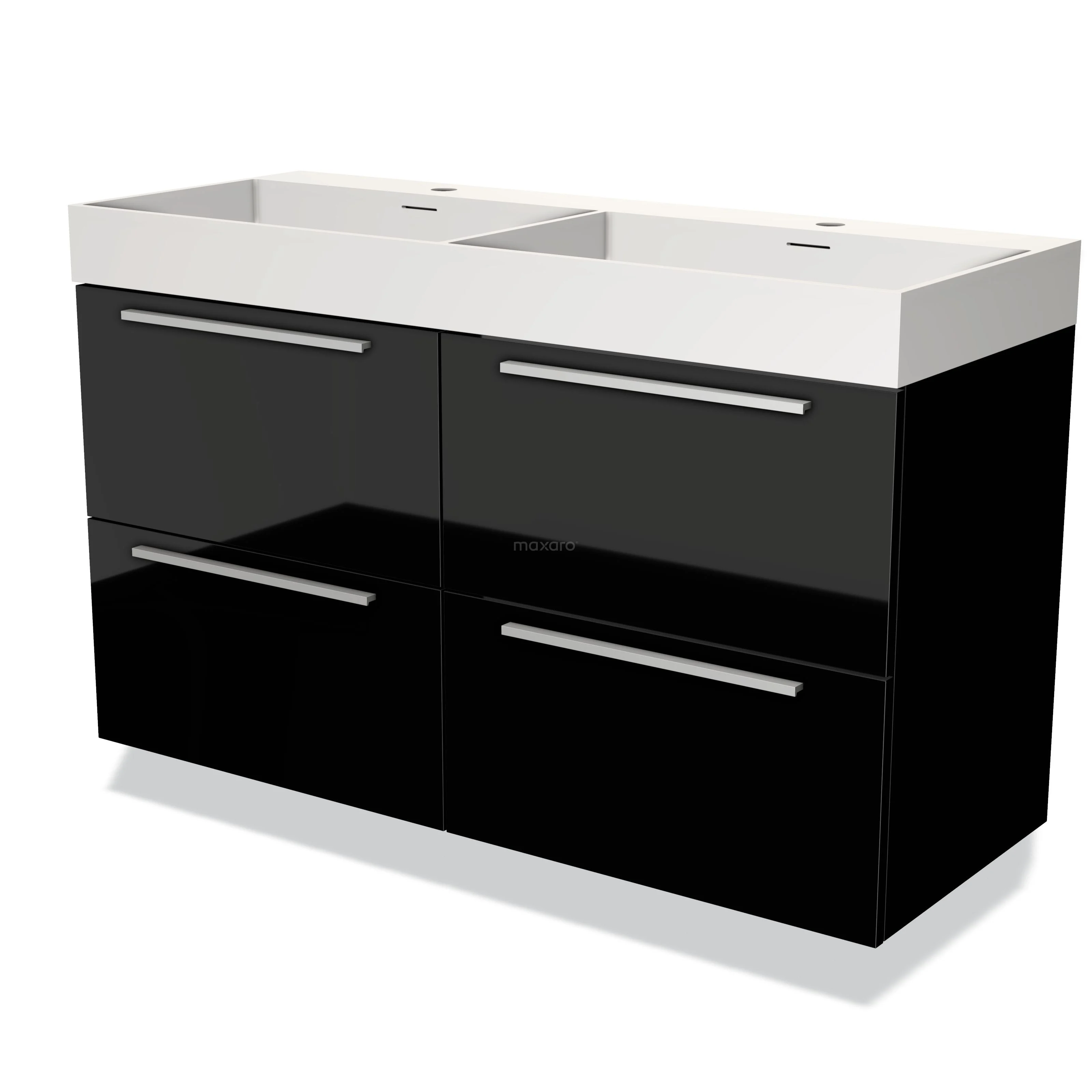 Modulo Waschtische | 120 cm Hochglanz Schwarz Flach front Solid Surface 4 Schubladen