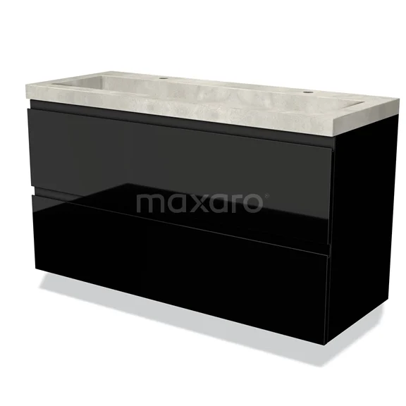Modulo Waschtische | 120 cm Hochglanz Schwarz Grifflos front Beton 2 übereinanderliegende Schubladen