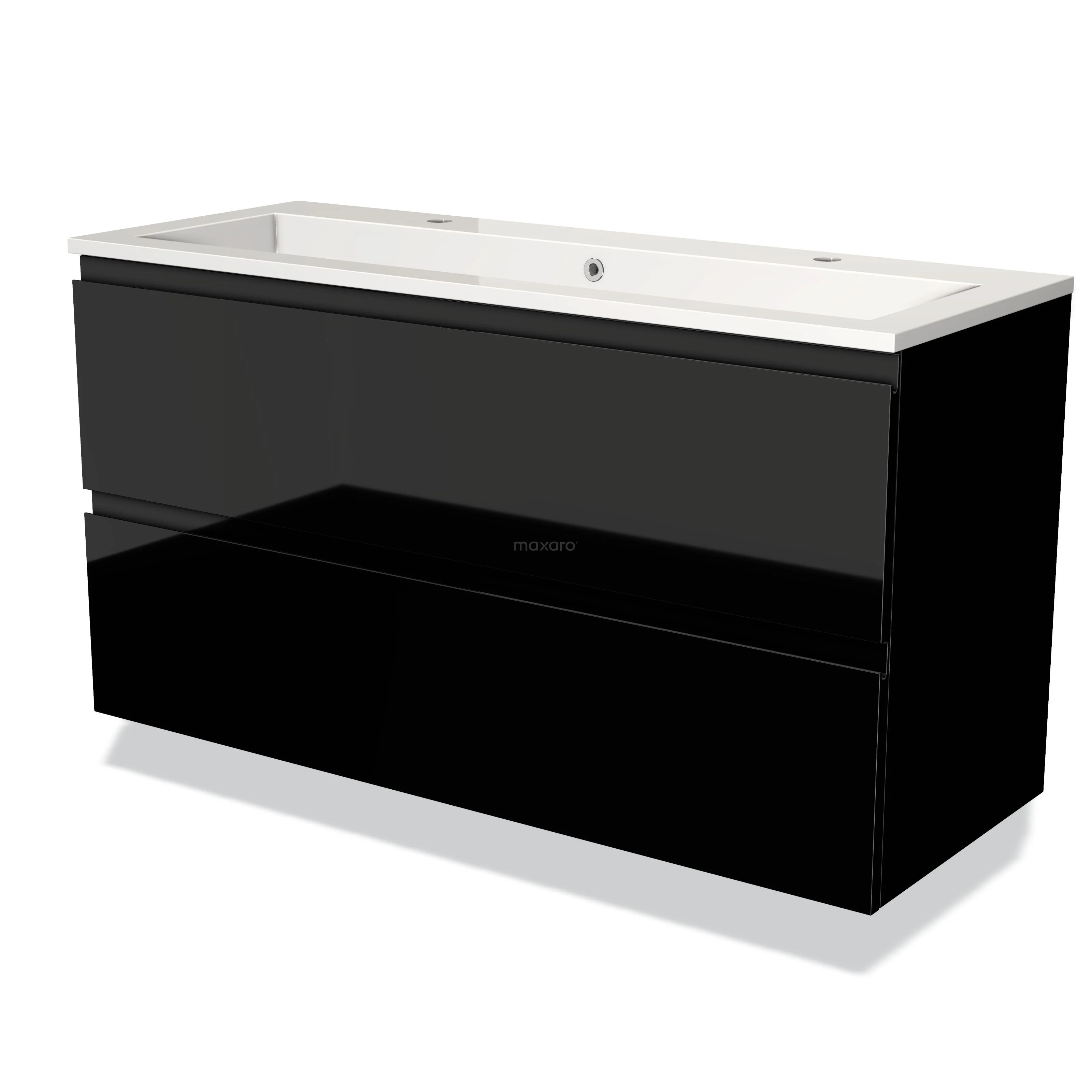 Modulo Waschtische | 120 cm Hochglanz Schwarz Grifflos front Mineralguss 2 übereinanderliegende Schubladen