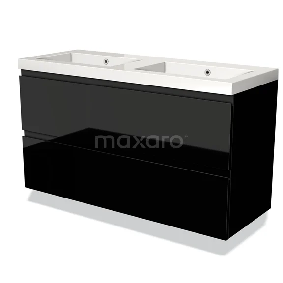 Modulo Waschtische | 120 cm Hochglanz Schwarz Grifflos front Mineralguss 2 übereinanderliegende Schubladen