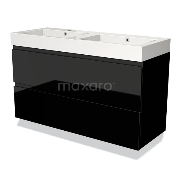Modulo Waschtische | 120 cm Hochglanz Schwarz Grifflos front Mineralguss 2 übereinanderliegende Schubladen