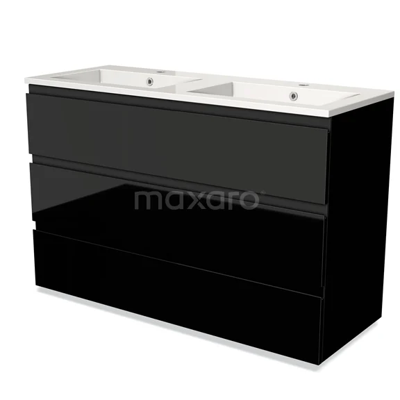 Modulo Waschtische | 120 cm Hochglanz Schwarz Grifflos front Mineralguss 3 Schubladen
