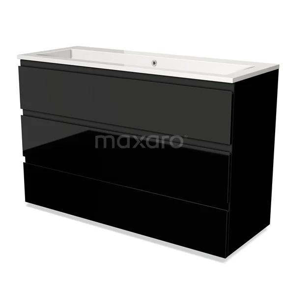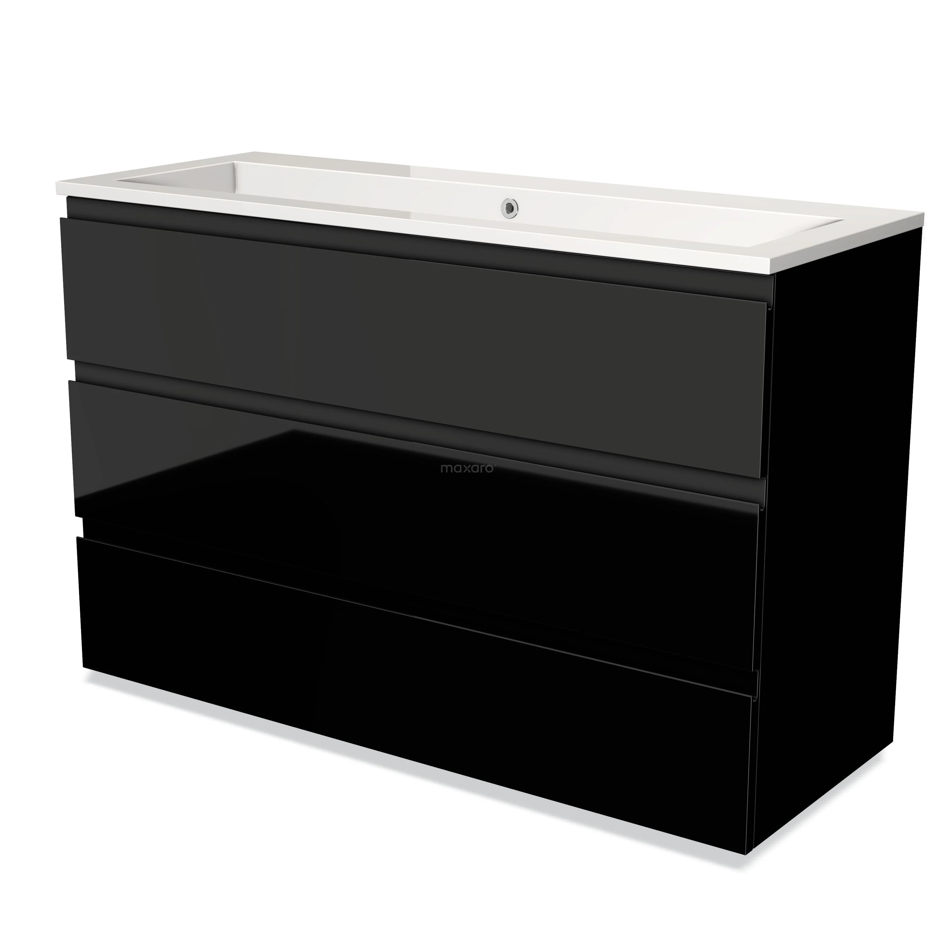 Modulo Waschtische | 120 cm Hochglanz Schwarz Grifflos front Mineralguss 3 Schubladen