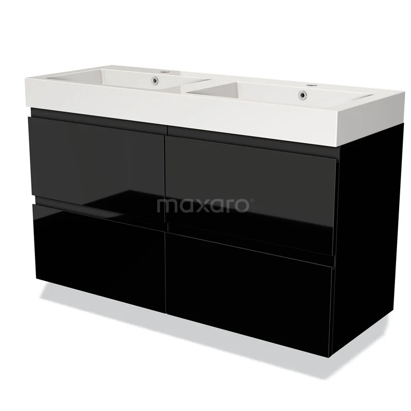 Modulo Waschtische | 120 cm Hochglanz Schwarz Grifflos front Mineralguss 4 Schubladen