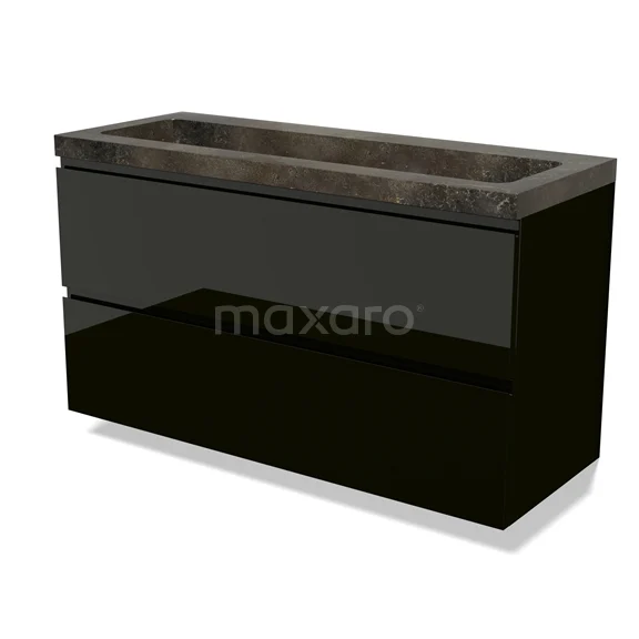 Modulo Waschtische | 120 cm Hochglanz Schwarz Grifflos front Naturstein 2 übereinanderliegende Schubladen
