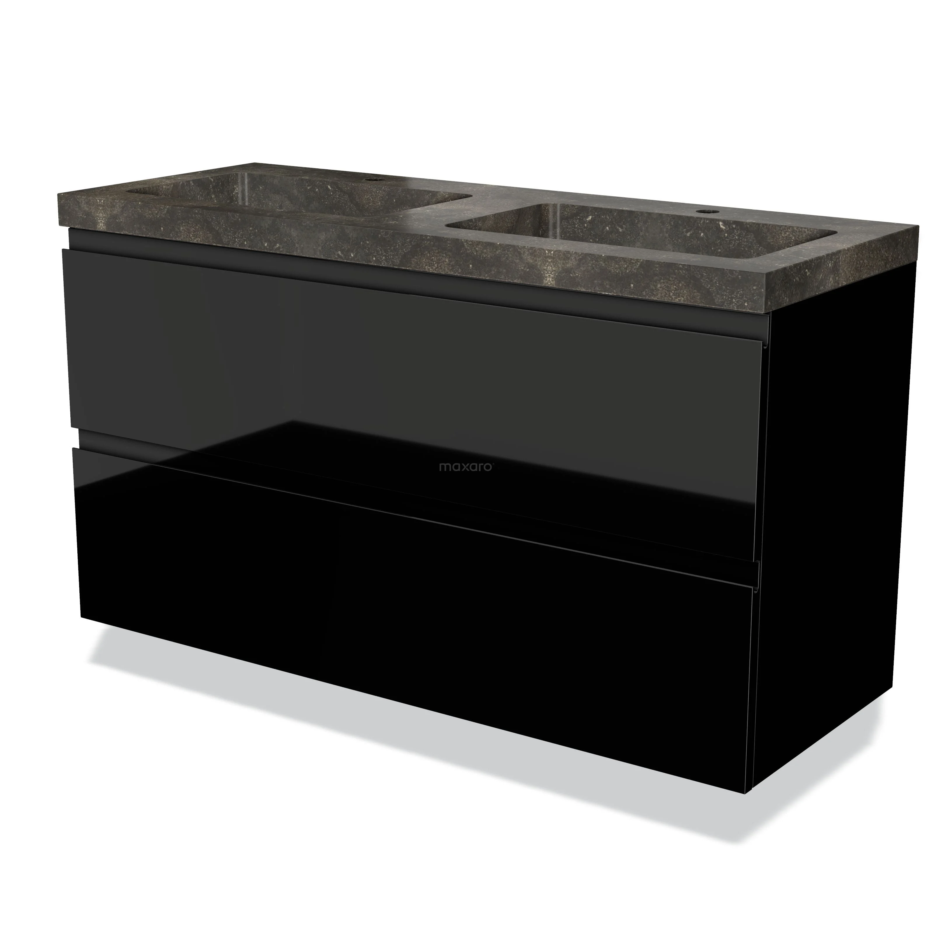 Modulo Waschtische | 120 cm Hochglanz Schwarz Grifflos front Naturstein 2 übereinanderliegende Schubladen