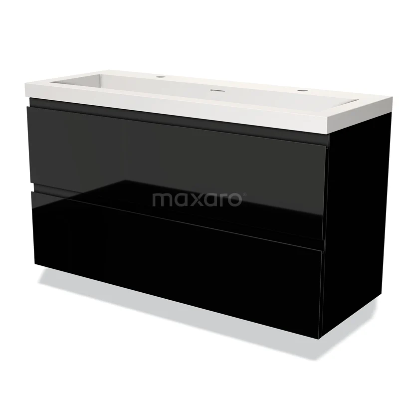 Modulo Waschtische | 120 cm Hochglanz Schwarz Grifflos front Solid Surface 2 übereinanderliegende Schubladen