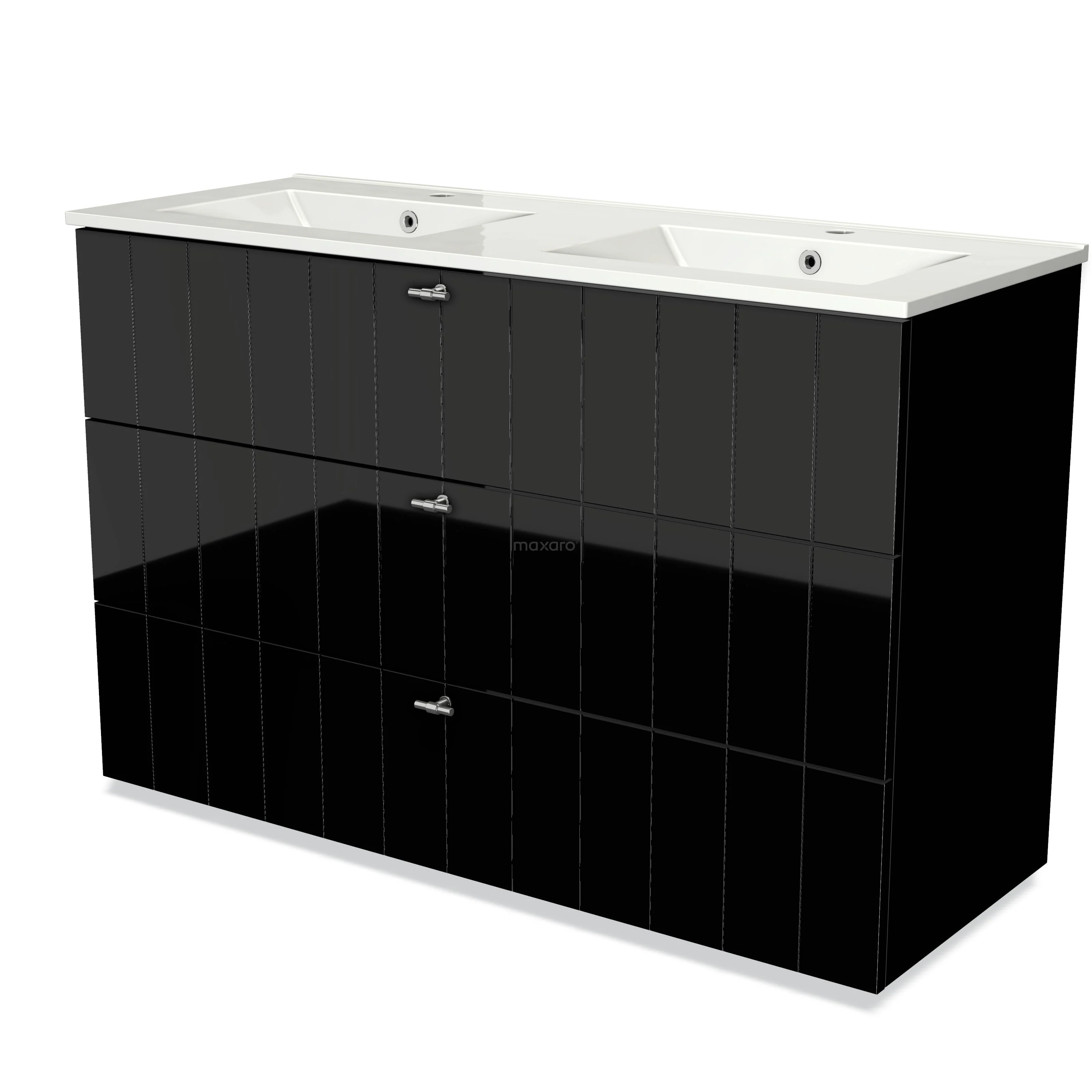 Modulo Waschtische | 120 cm Hochglanz Schwarz Lamelle front Keramik 3 Schubladen