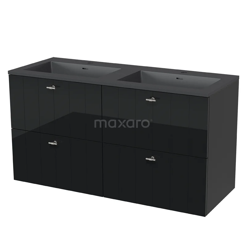Modulo Waschtische | 120 cm Hochglanz Schwarz Lamelle front Quarz 4 Schubladen
