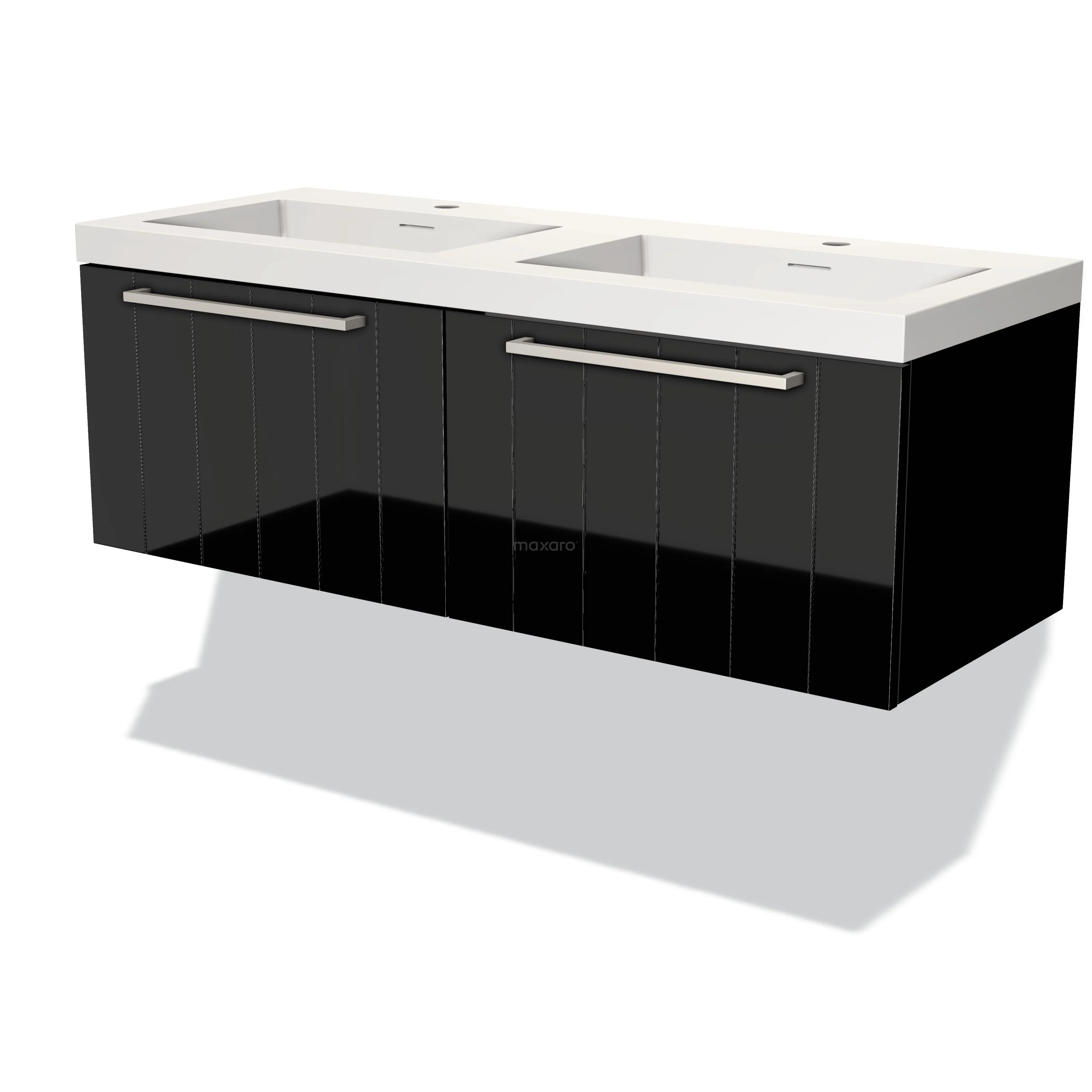 Modulo Waschtische | 120 cm Hochglanz Schwarz Lamelle front Solid Surface 2 nebeneinanderliegende Schubladen