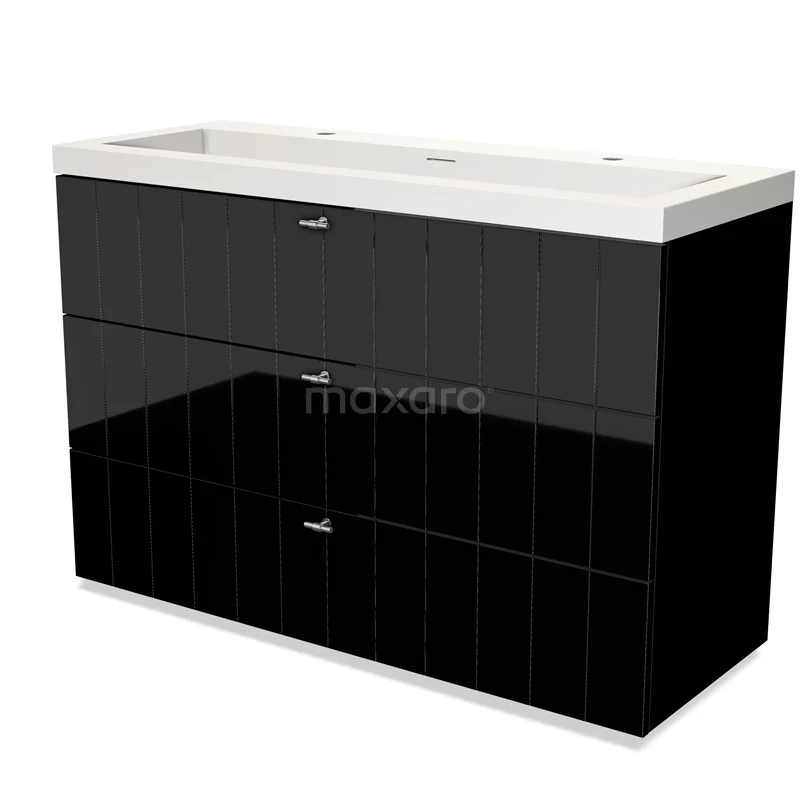Modulo Waschtische | 120 cm Hochglanz Schwarz Lamelle front Solid Surface 3 Schubladen