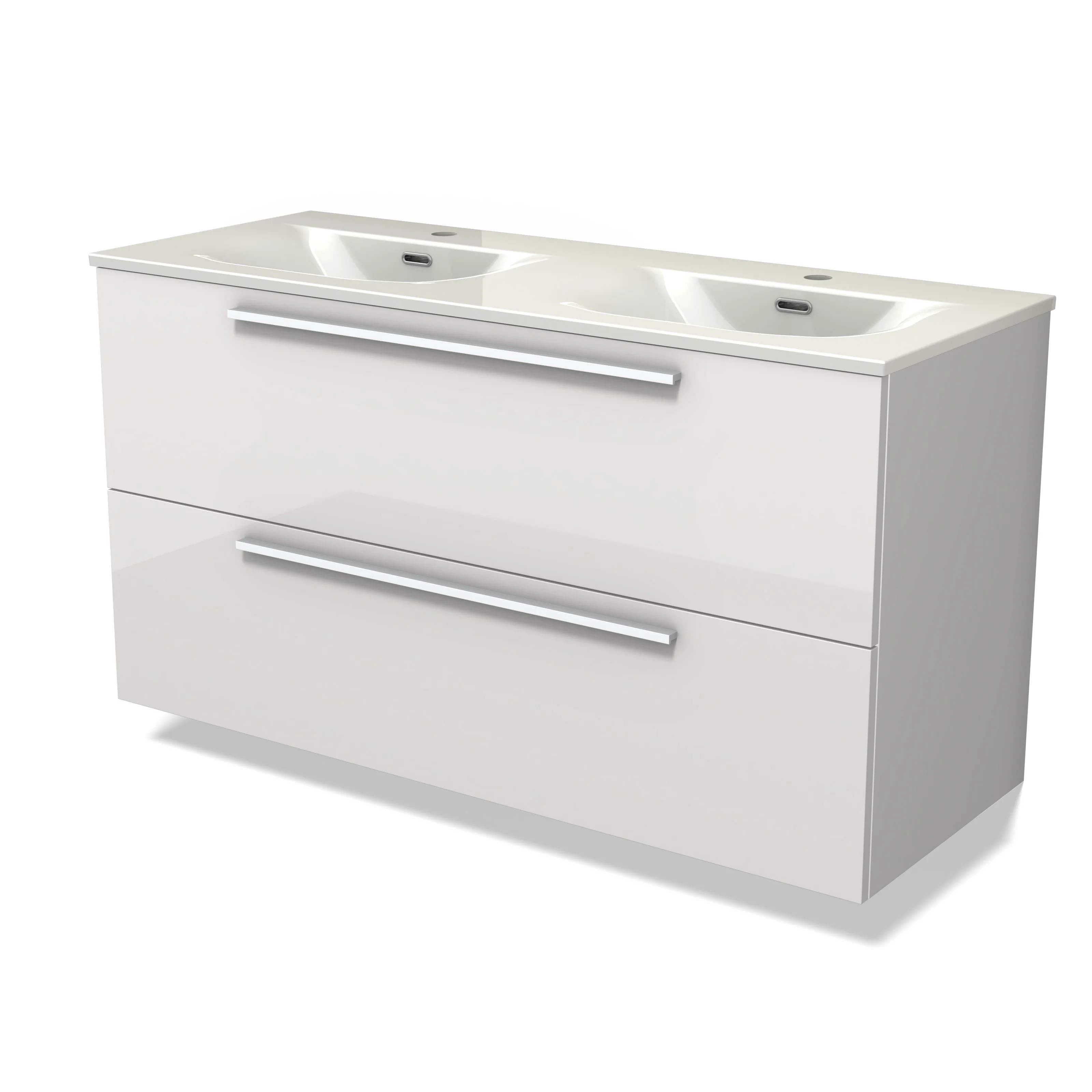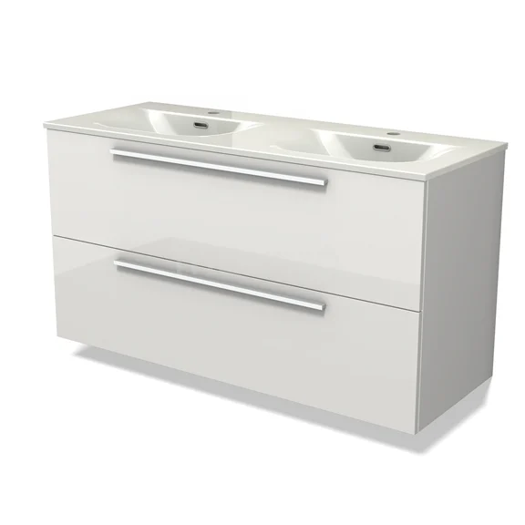 Modulo Waschtische | 120 cm Hochglanz Weiß Flach front Keramik 2 übereinanderliegende Schubladen