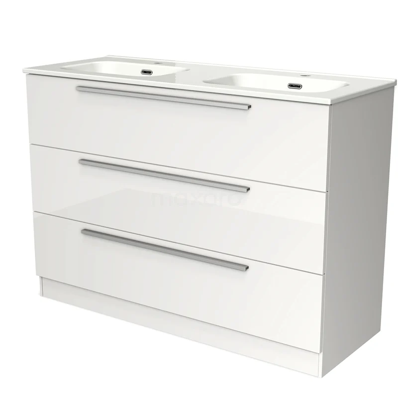 Modulo Waschtische | 120 cm Hochglanz Weiß Flach front Keramik 3 stehende Schubladen