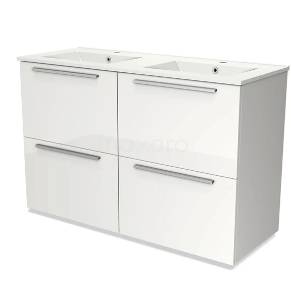 Modulo Waschtische | 120 cm Hochglanz Weiß Flach front Keramik 4 hohe Schubladen