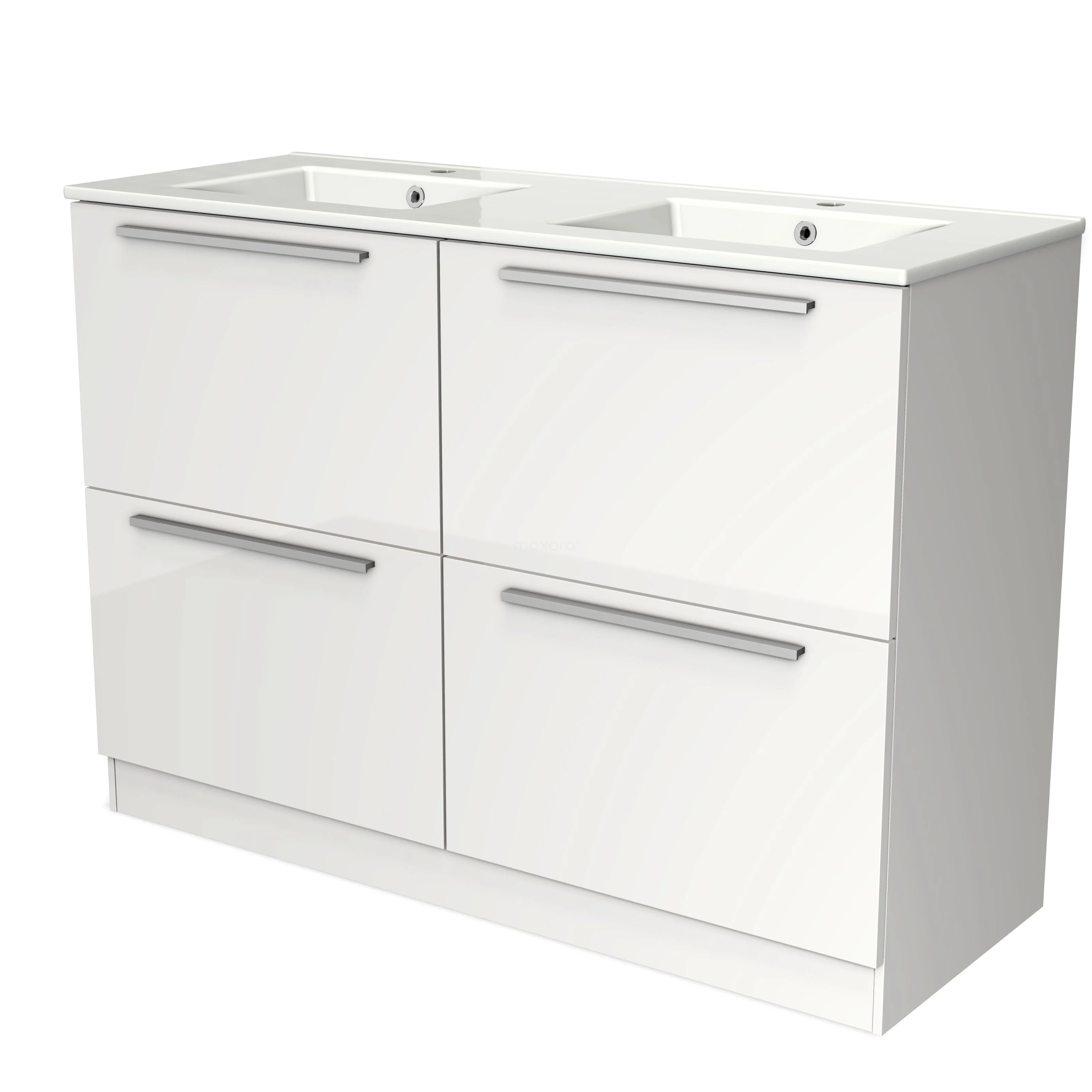 Modulo Waschtische | 120 cm Hochglanz Weiß Flach front Keramik 4 hohe Schubladen stehend