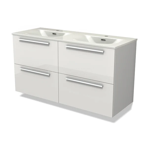 Modulo Waschtische | 120 cm Hochglanz Weiß Flach front Keramik 4 Schubladen