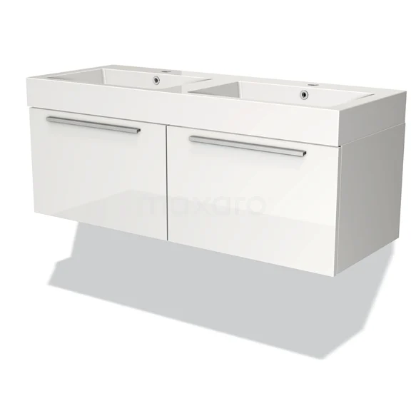 Modulo Waschtische | 120 cm Hochglanz Weiß Flach front Mineralguss 2 nebeneinanderliegende Schubladen