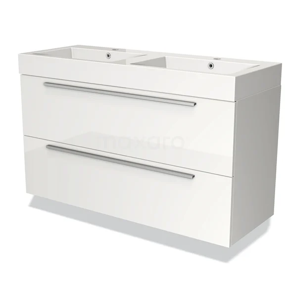 Modulo Waschtische | 120 cm Hochglanz Weiß Flach front Mineralguss 2 übereinanderliegende Schubladen