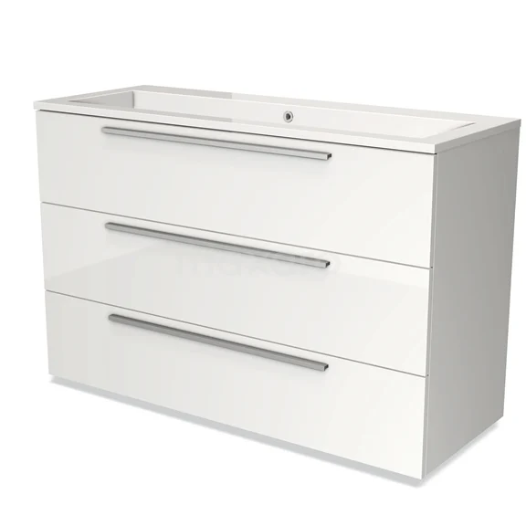 Modulo Waschtische | 120 cm Hochglanz Weiß Flach front Mineralguss 3 Schubladen